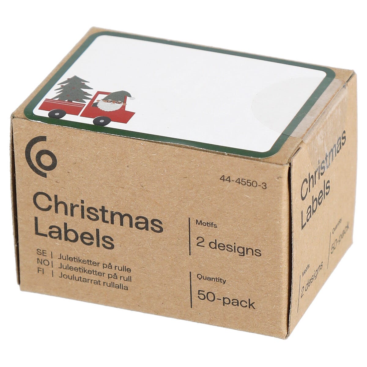 • Klassiska juletiketter på rulle – lätta att klistra på inslagna paket.