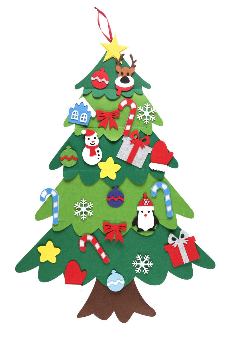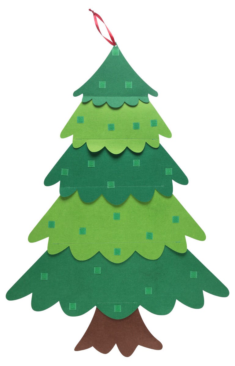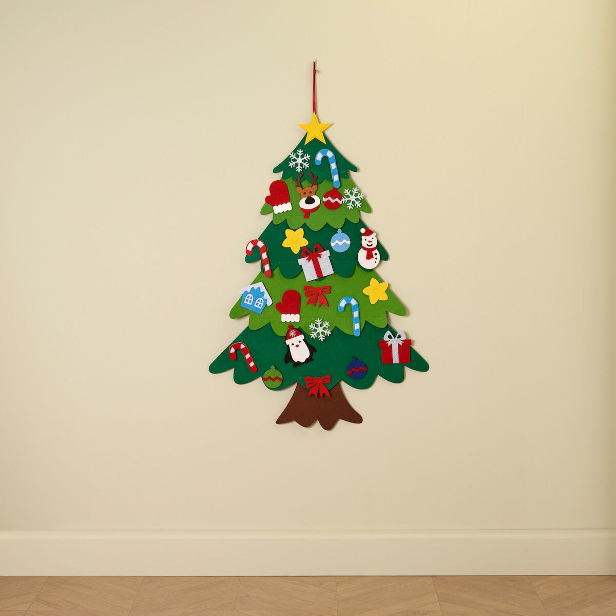 • Julgran i filt med stadig kardborre – lätt att fästa och ta bort de 24 pynten.