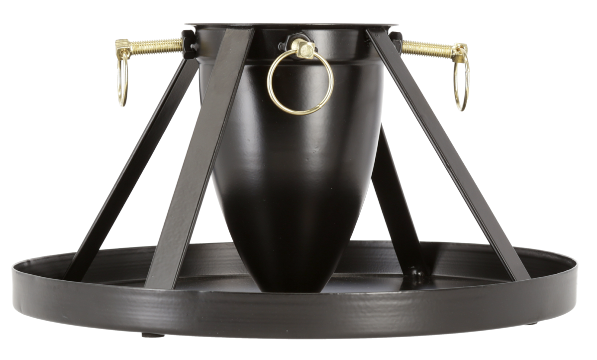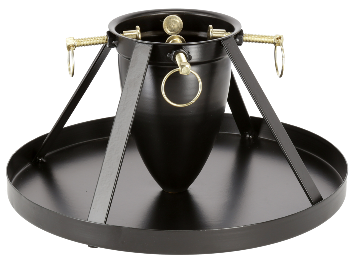 • Julgransfot av svart metall med guldfärgade detaljer.