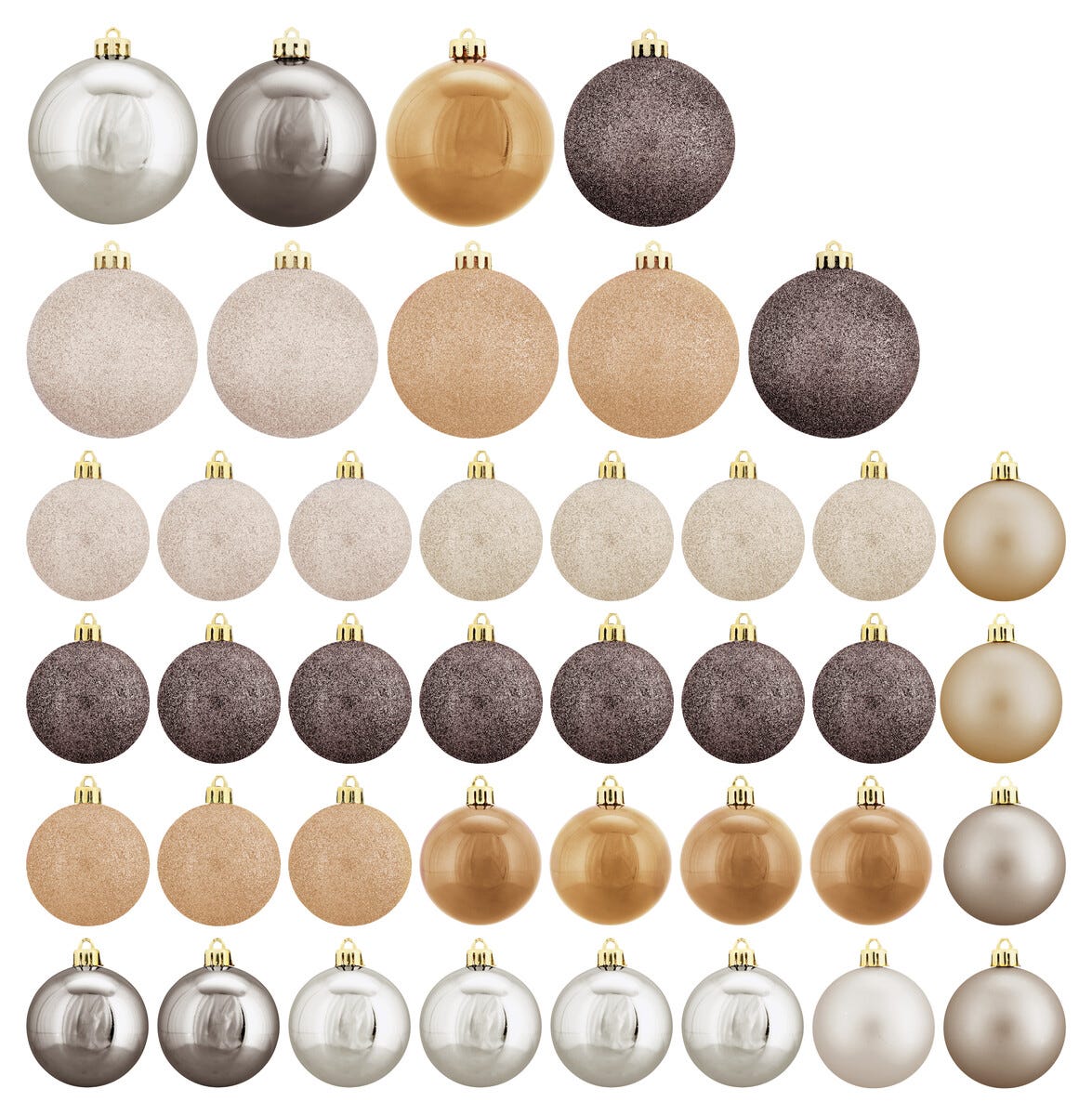 • Blanka, glittriga julkulor i olika storlekar av återvunnet material.