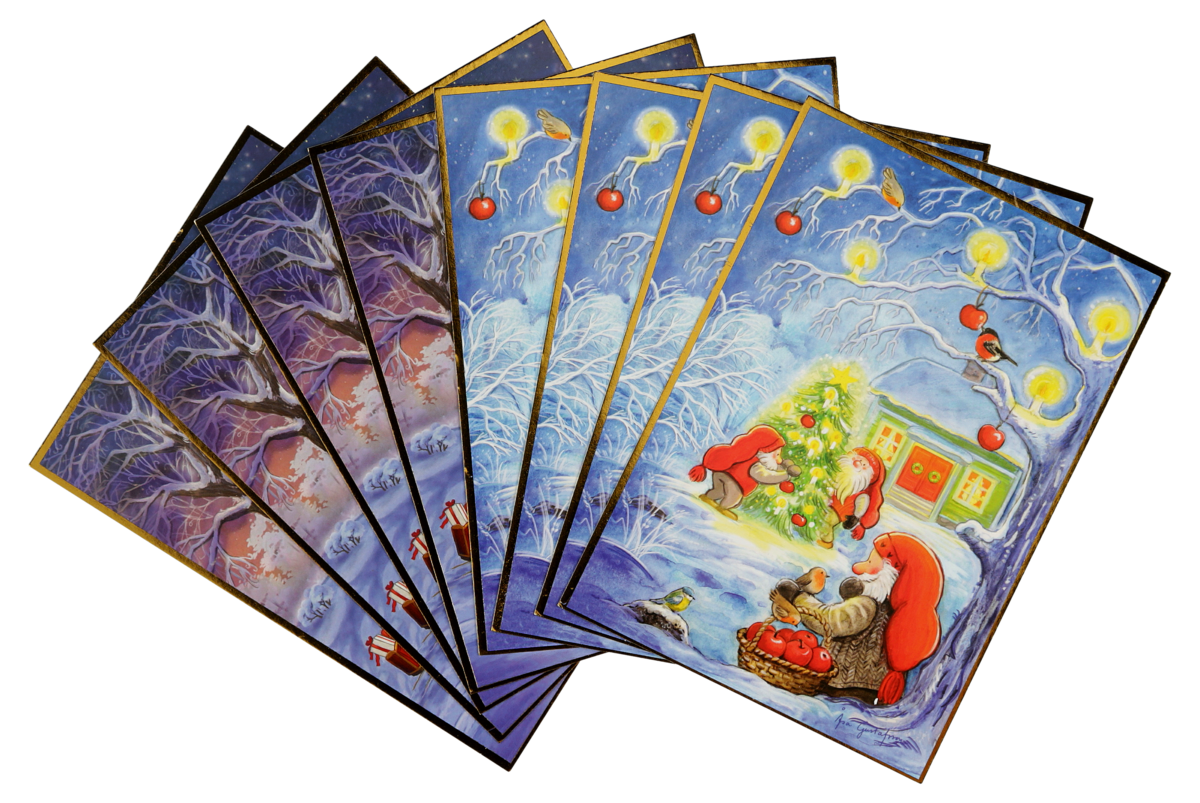Julkort enkla, 8-pack, 4 motiv