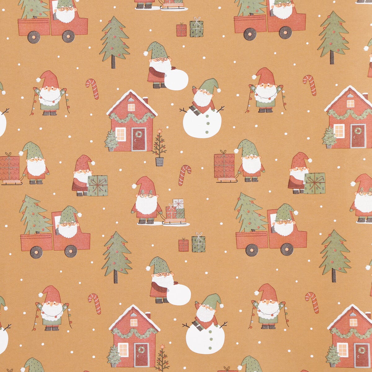• Julpapper med klassiska julmönster – polkagrisar, tomtar och ränder.