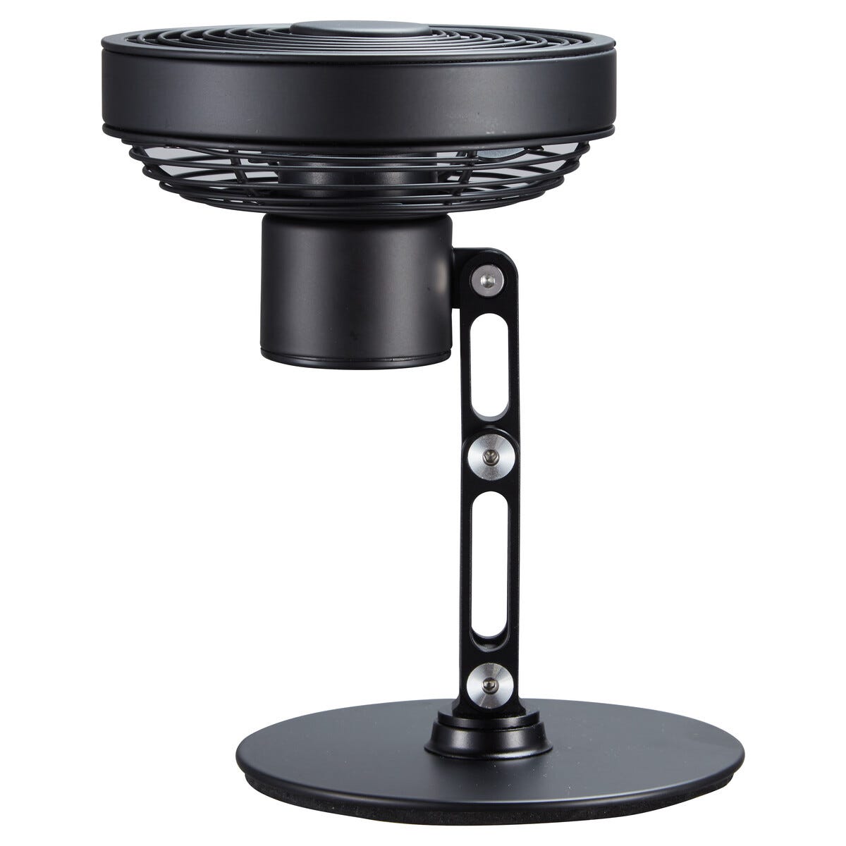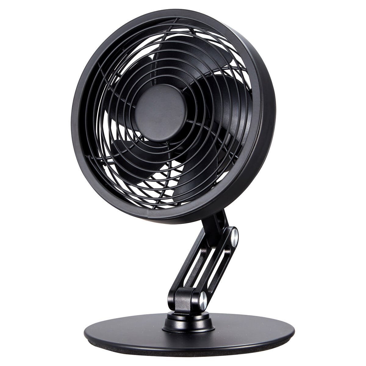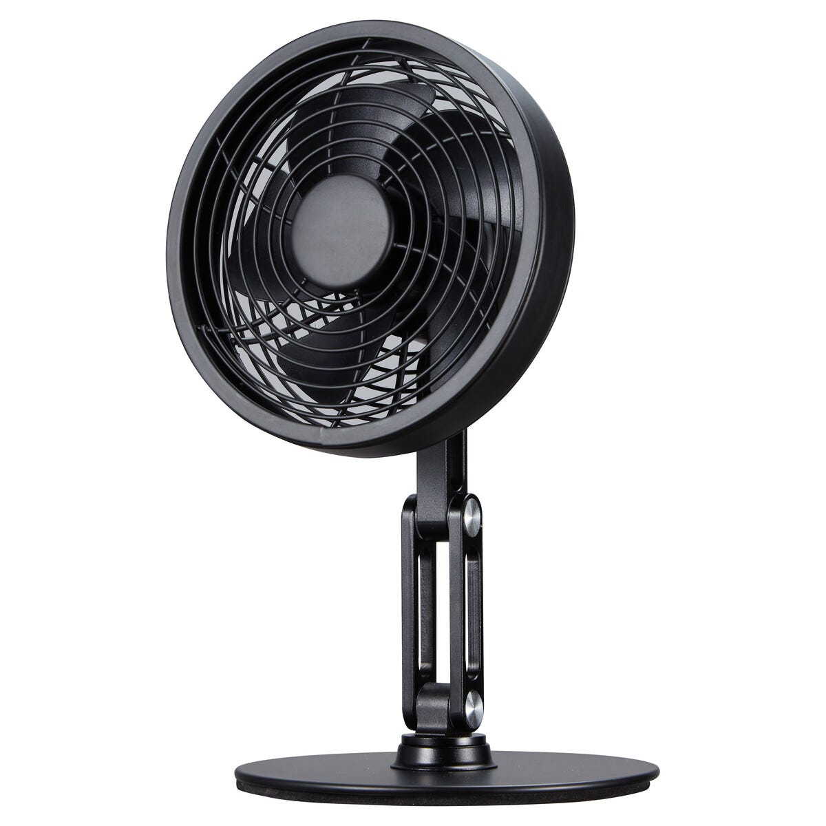 • Portabel USB-fläkt i svart metall – enkel att ta med mellan rum.