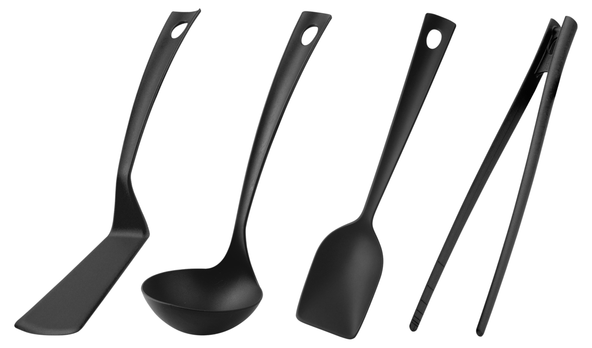 • Klassiska köksredskap: stekspade, sked, slev och tång.