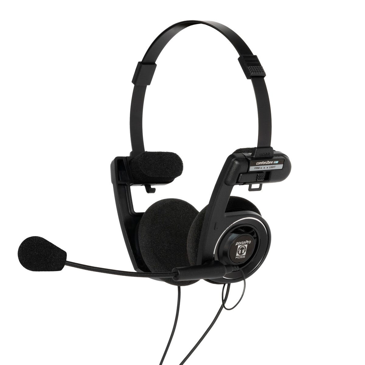 • KOSS Porta Pro headset svart – mjuka öronkuddar, justerbar bygel och flexibel mikrofonarm.