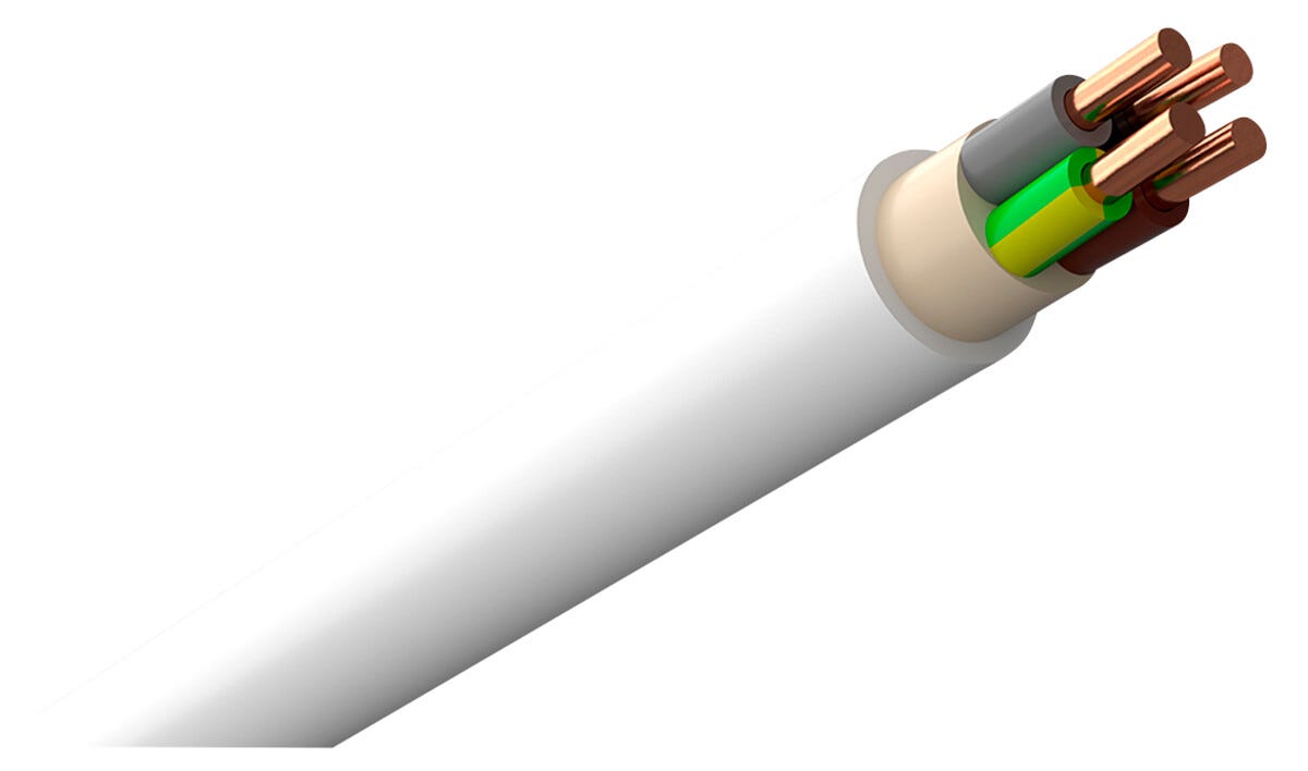 • 4-ledad kabel med färgerna brun, svart, blå och gröngul.
