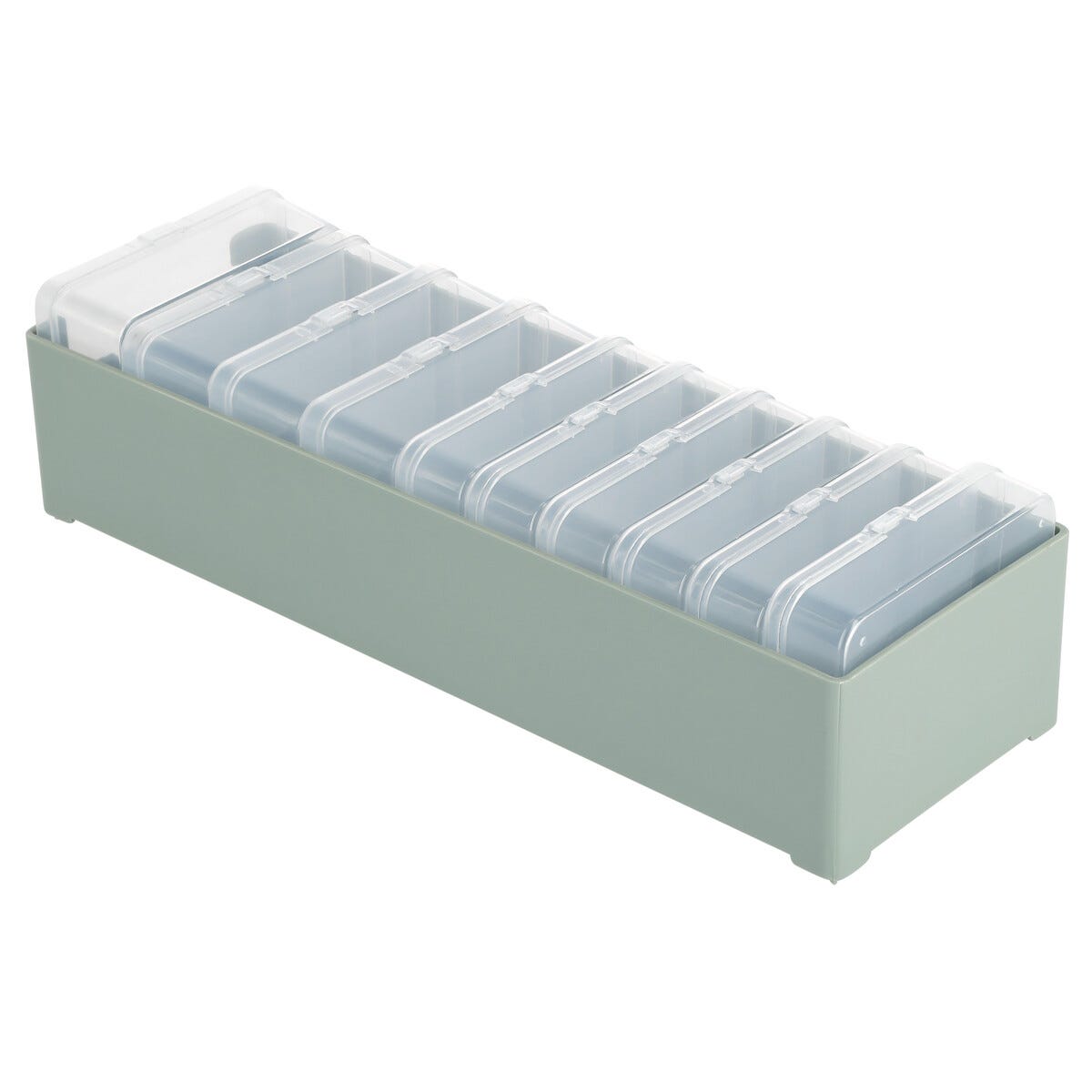 • Kabelförvaring med transparenta askar – lätt att sortera och hitta.