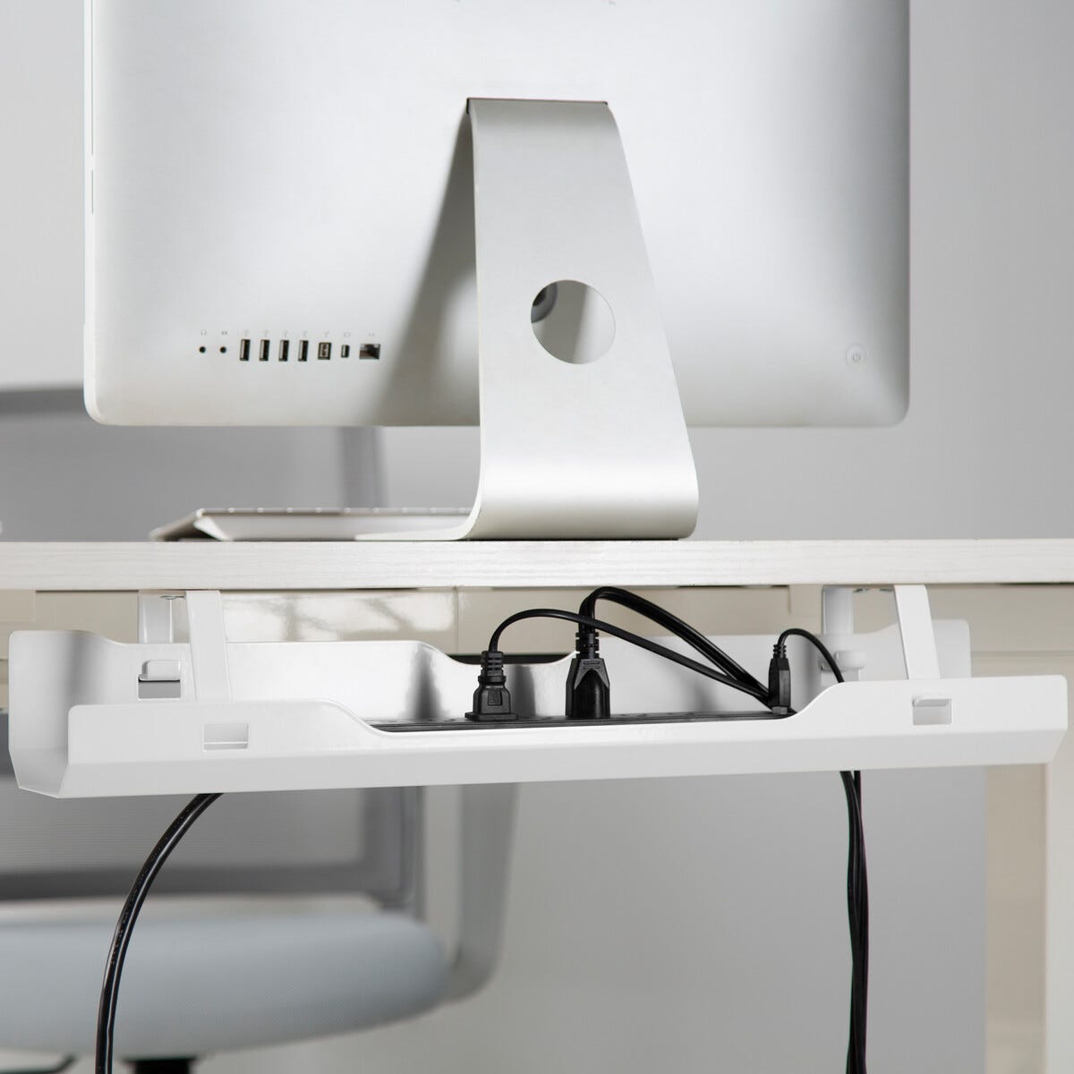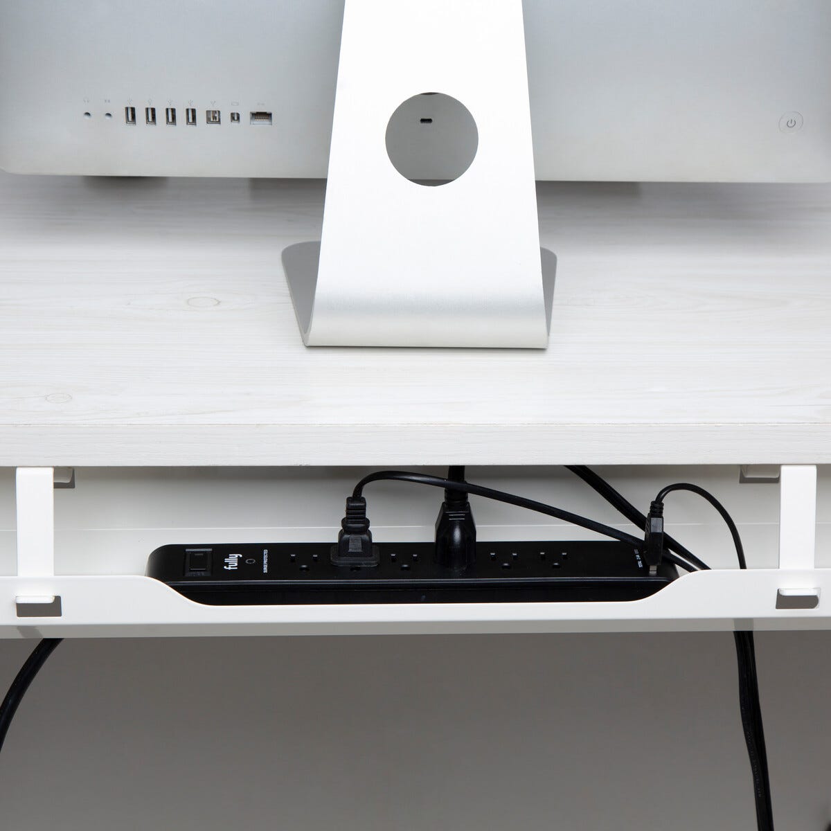 • Praktisk kabelränna som håller kablar och grenuttag prydligt på plats.