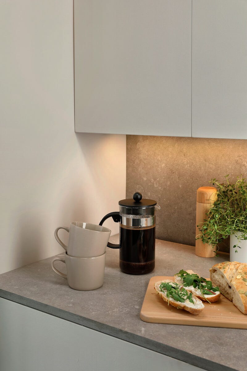 • Pressbryggare som snabbt gör gott och aromatiskt kaffe.