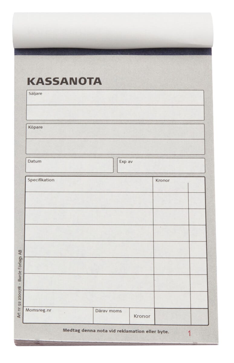 Kassanota A6 med kopia