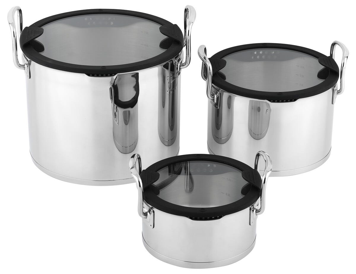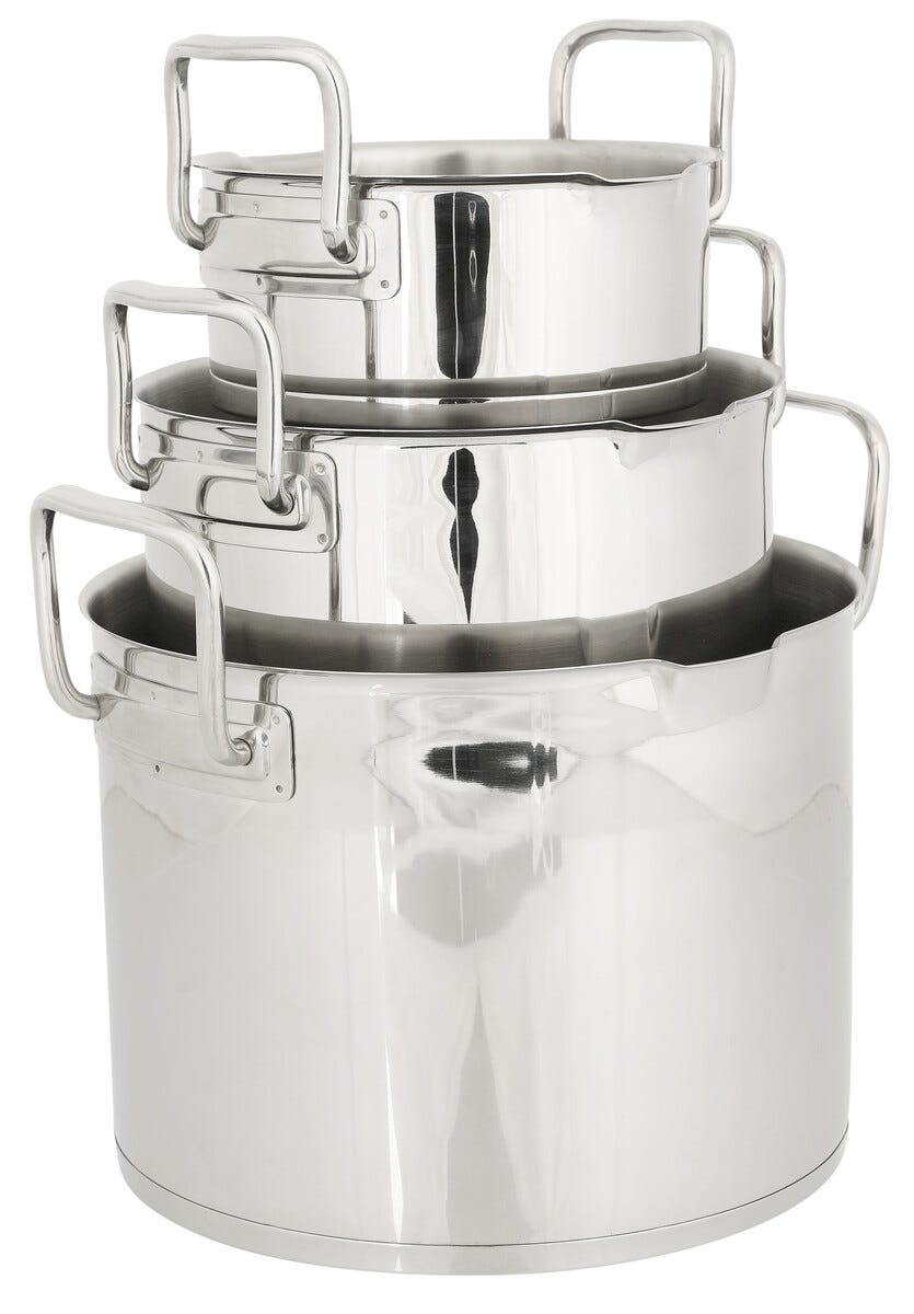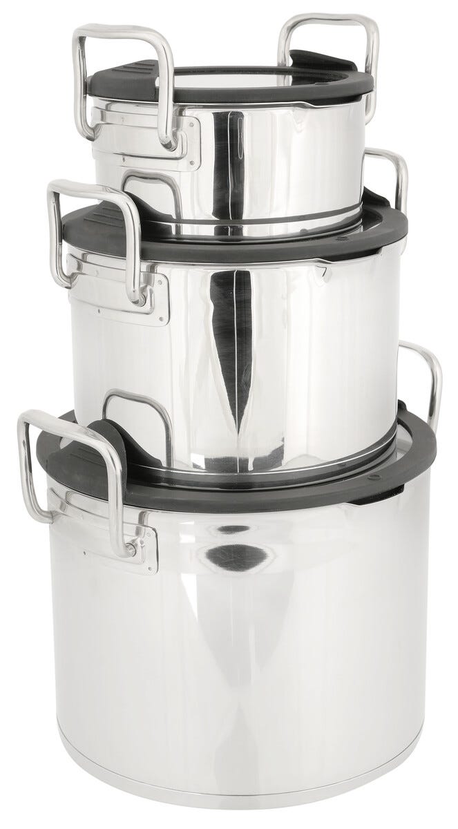 • Kastrullset med 3 grytor (1,5, 3,9 samt 8,1 liter) och 3 lock.