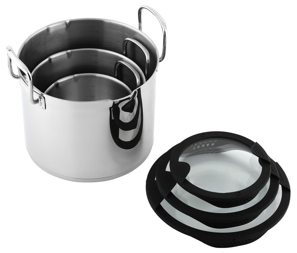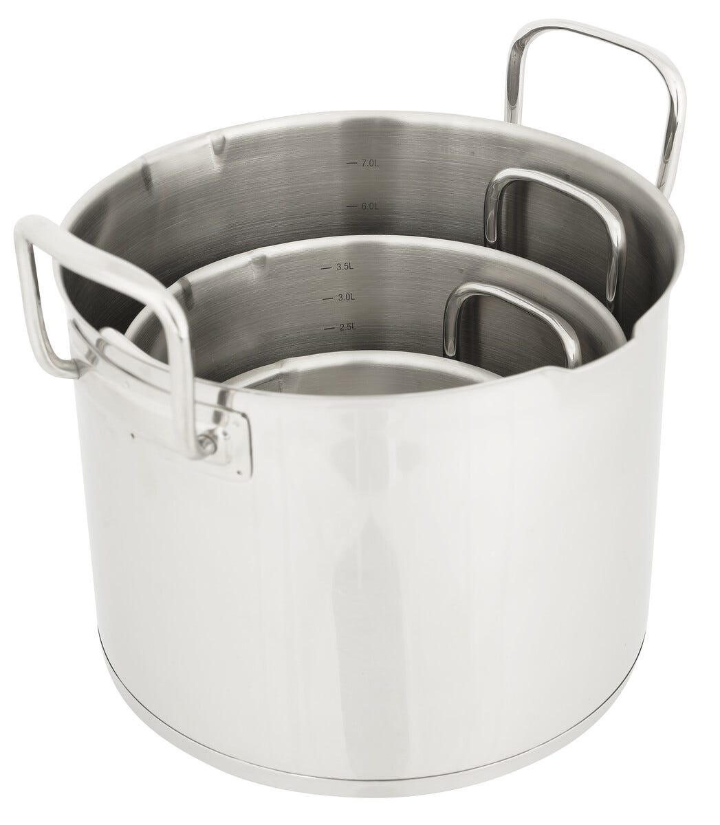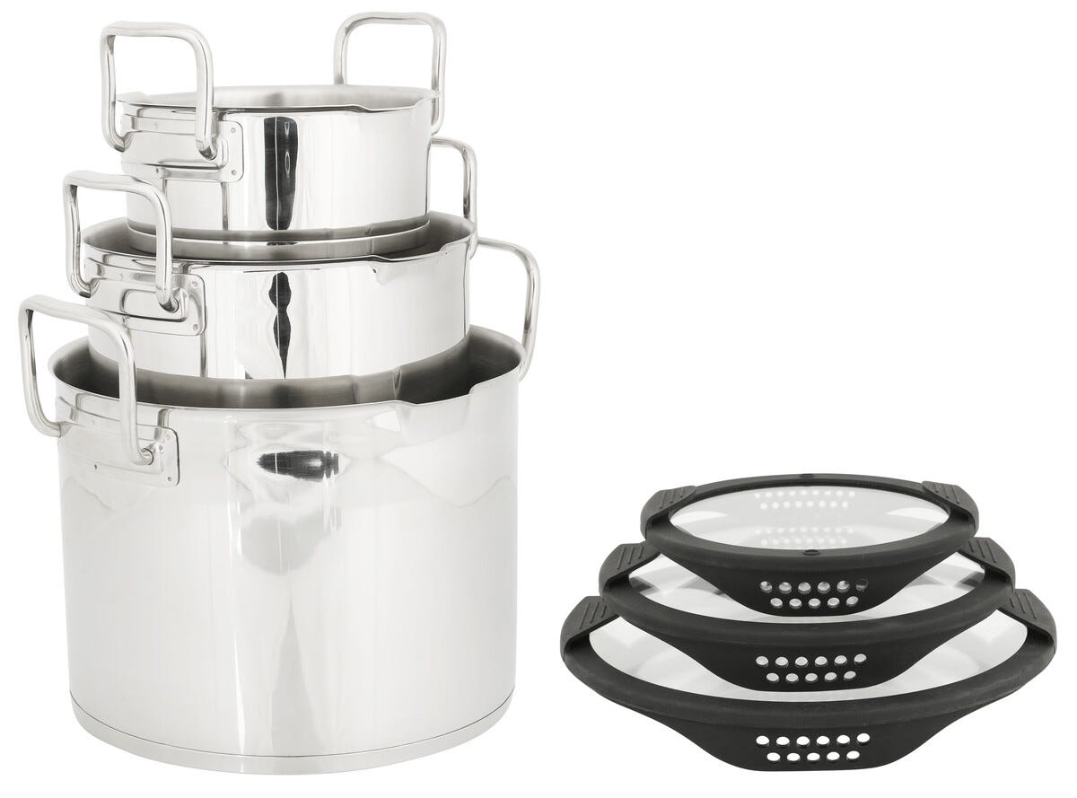 • Kastrullset med 3 grytor (1,5, 3,9 samt 8,1 liter) och 3 lock.