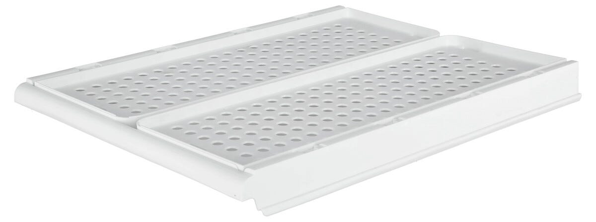 • Stabil, vit back i plast som kan fällas ihop när den inte används.