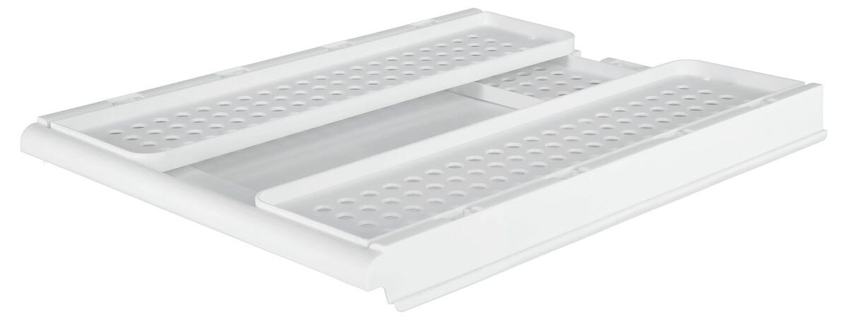 • Stabil, vit back i plast som kan fällas ihop när den inte används.