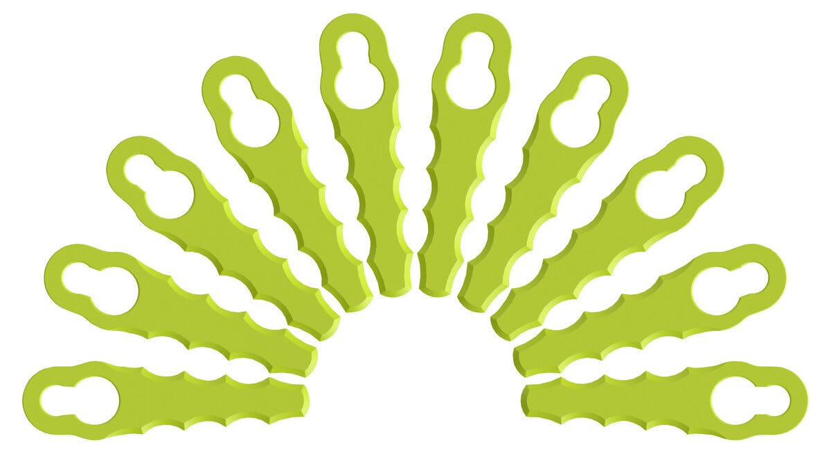 • 10-pack reservknivar till trimmerhuvud med plastknivar.