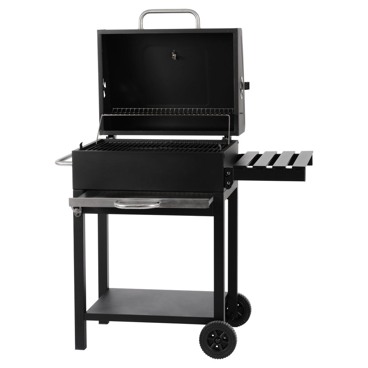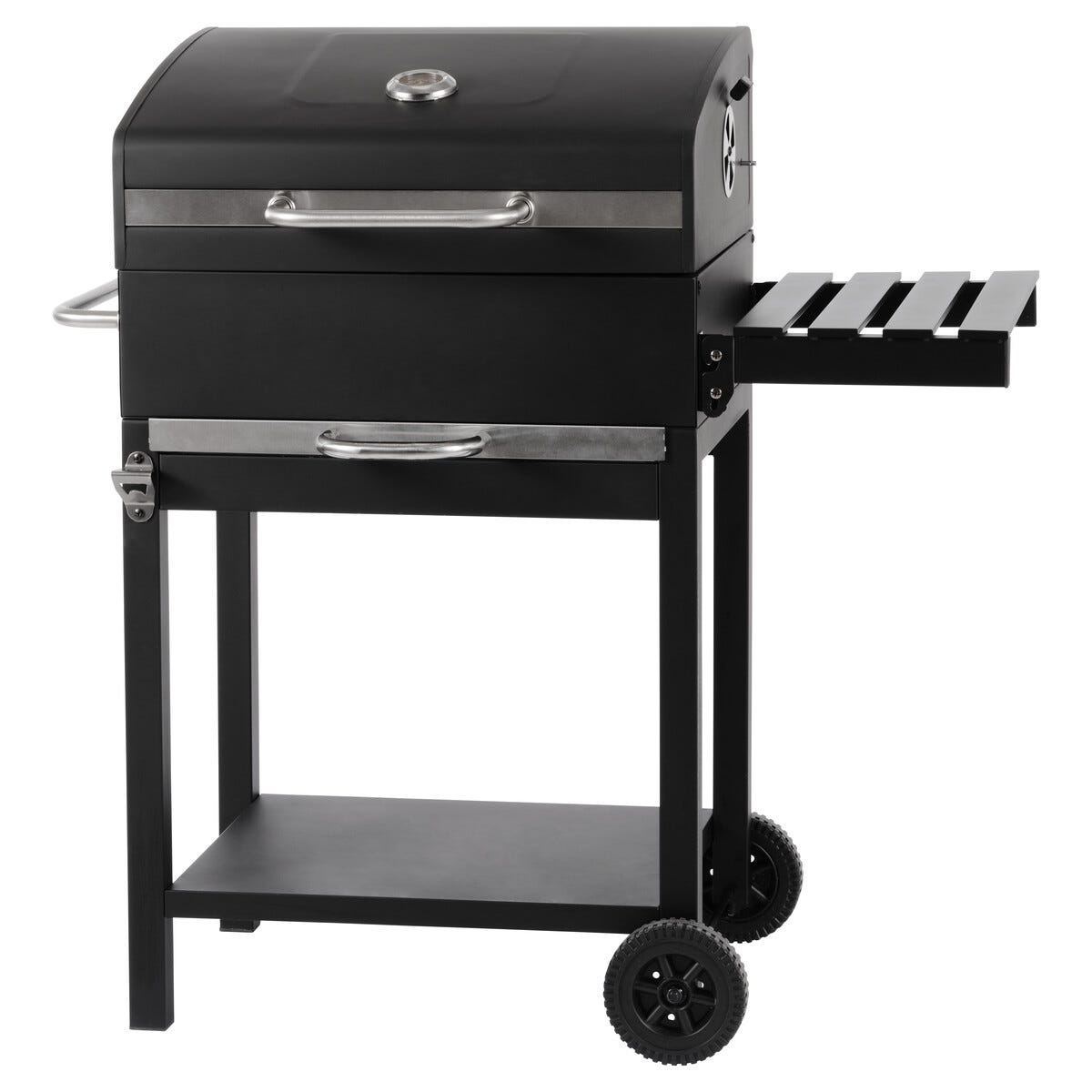 Kolgrill med hjul, lock och sidobord