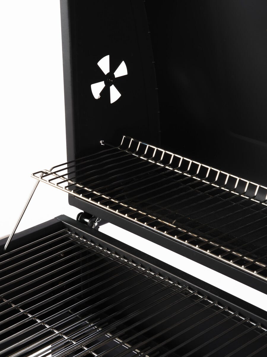 • Kolgrill med grillgaller i kromat stål – stor grillyta: 41,5 x 55 cm.