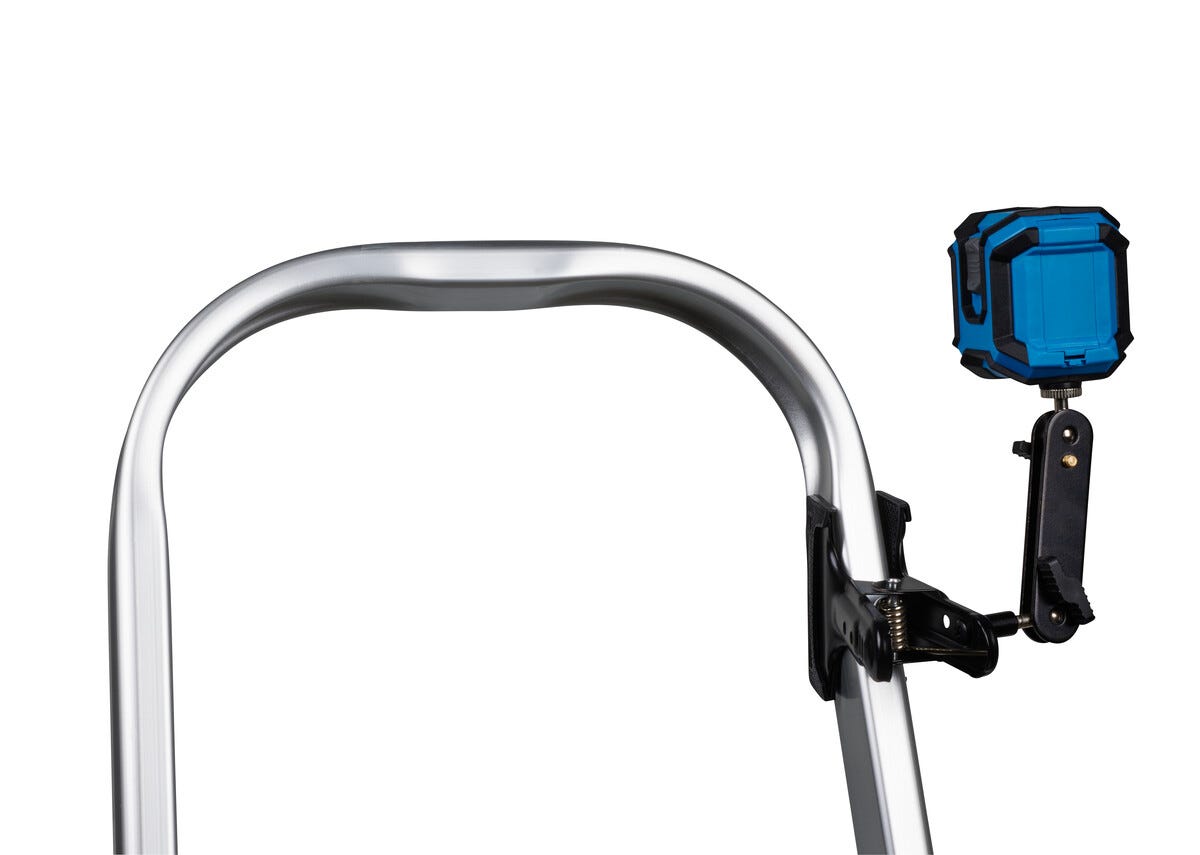 • Smart universalfäste med svivelarm - enkel att montera på trappstege etc.