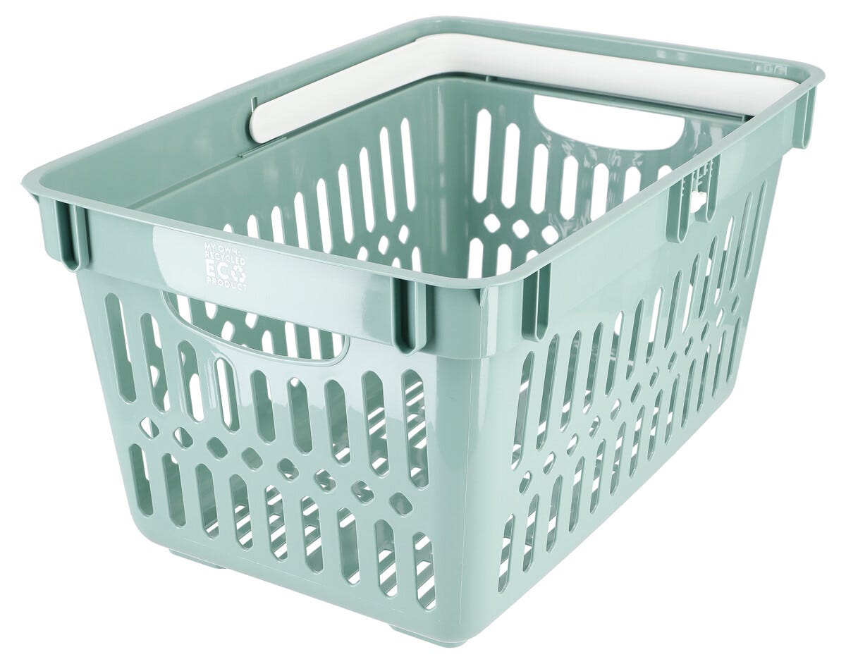• Ett uppfällbart och två integrerade handtag gör plastkorgen lätt att bära.