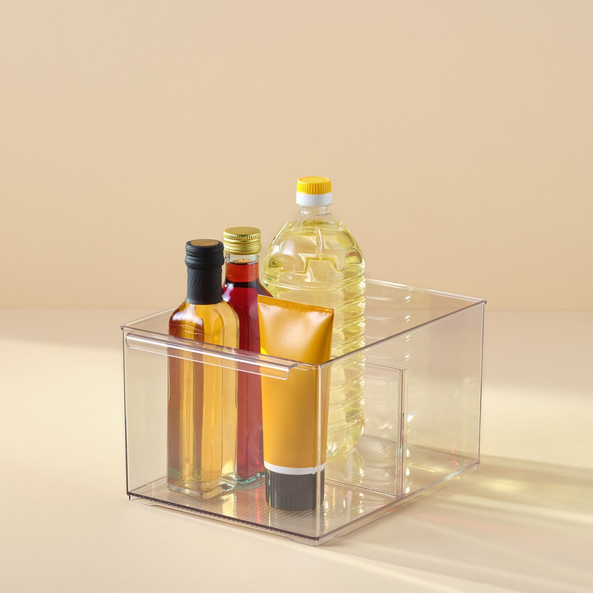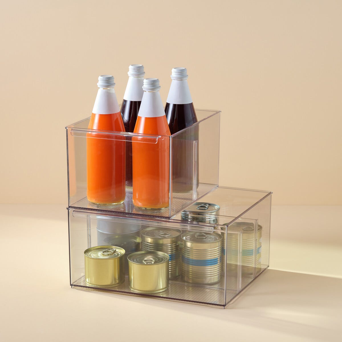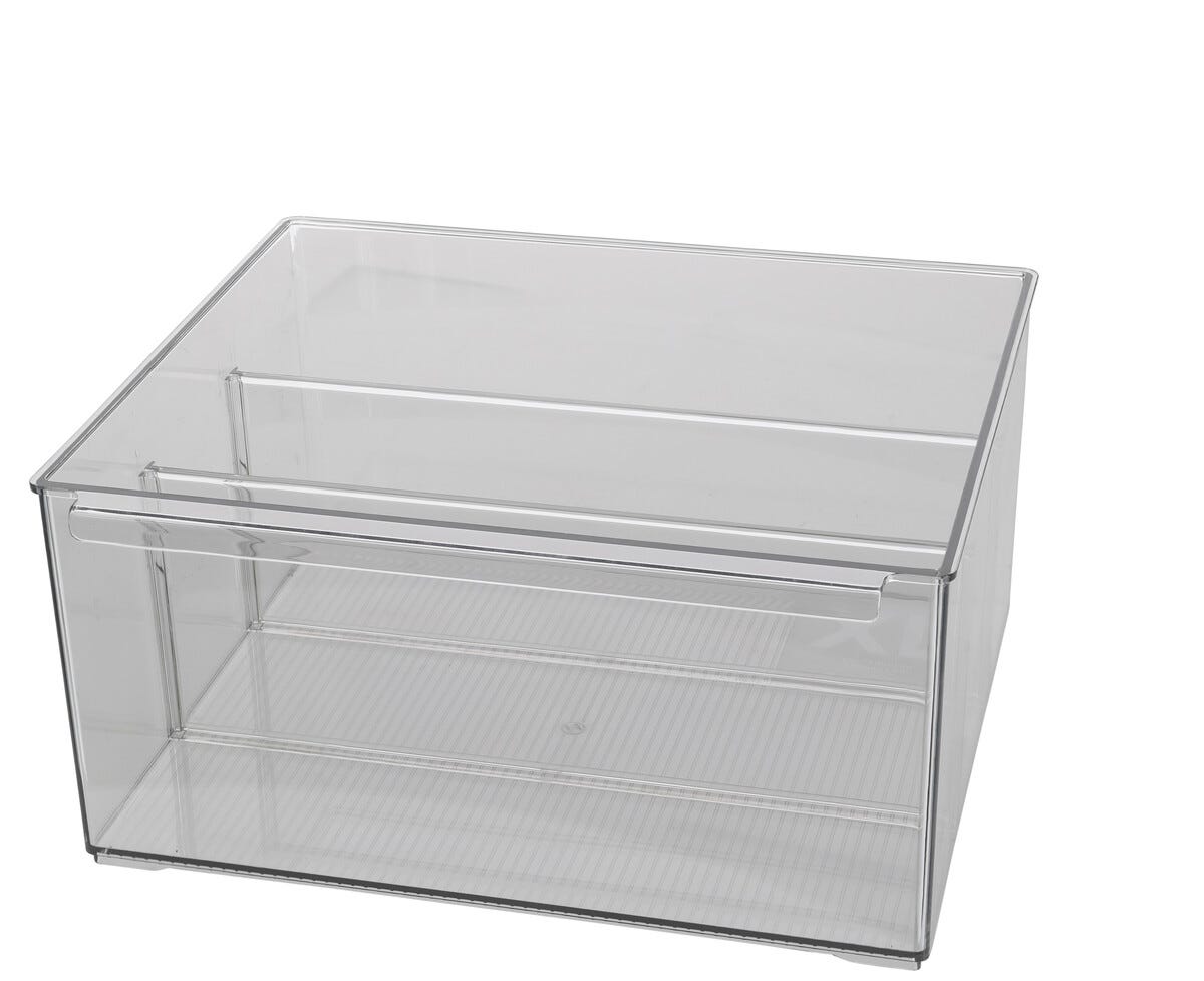 • Transparent kylskåpsförvaring av tålig PET-plast.