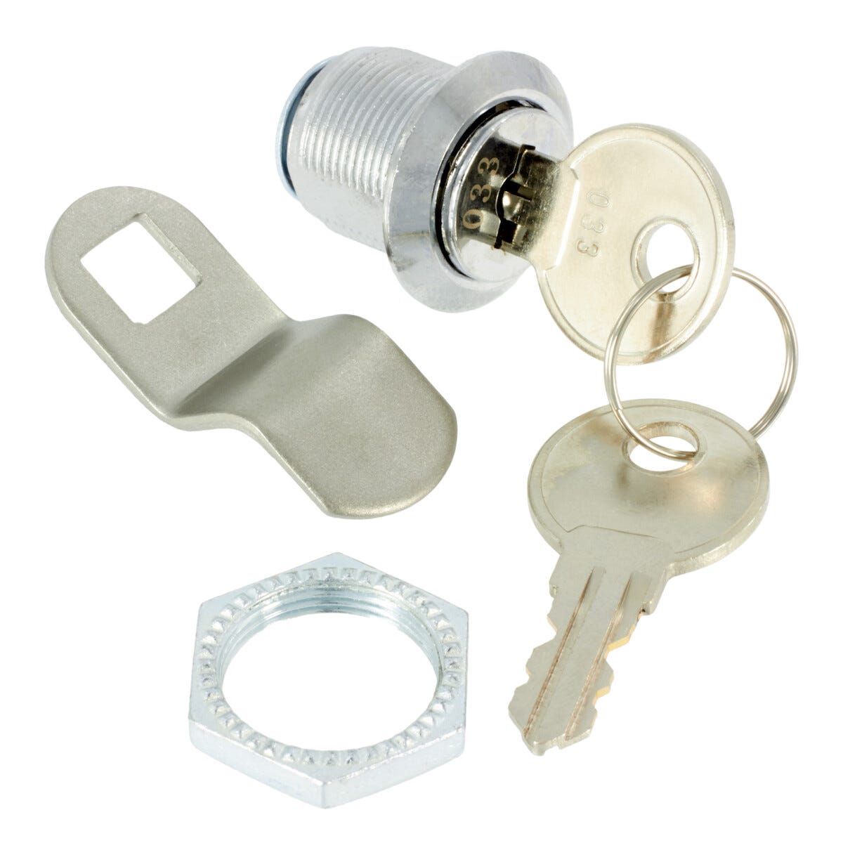 Komplett med 2 nycklar. 18 x 20 mm.