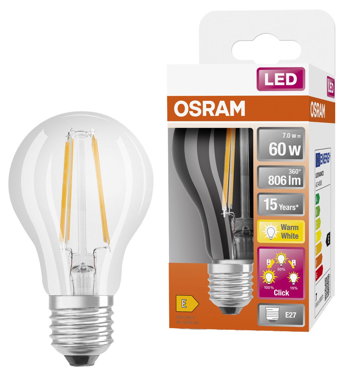 LED lampa E27 med dimmer i 3 steg, Osram