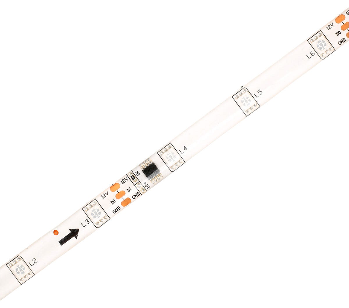 • LED-ljusslinga med möjlighet att styra färg och ljus individuellt på 3 dioder i taget.