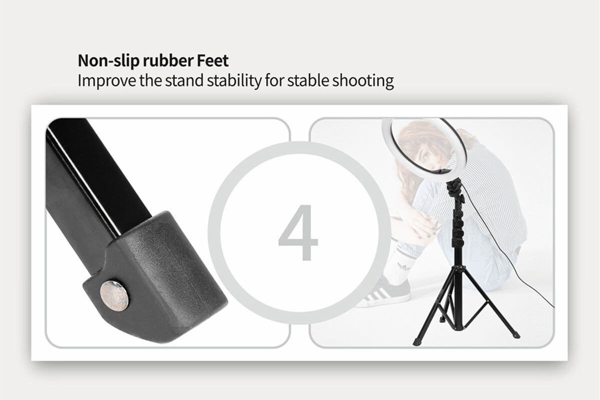 • Komplett paket med ringljus, justerbart stativ, fjärrkontroll och mobilhållare.