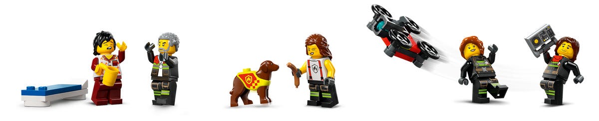• 843 LEGO-delar, 5 minifigurer, 1 hundfigur och tydliga steg-för-steg-instruktioner.