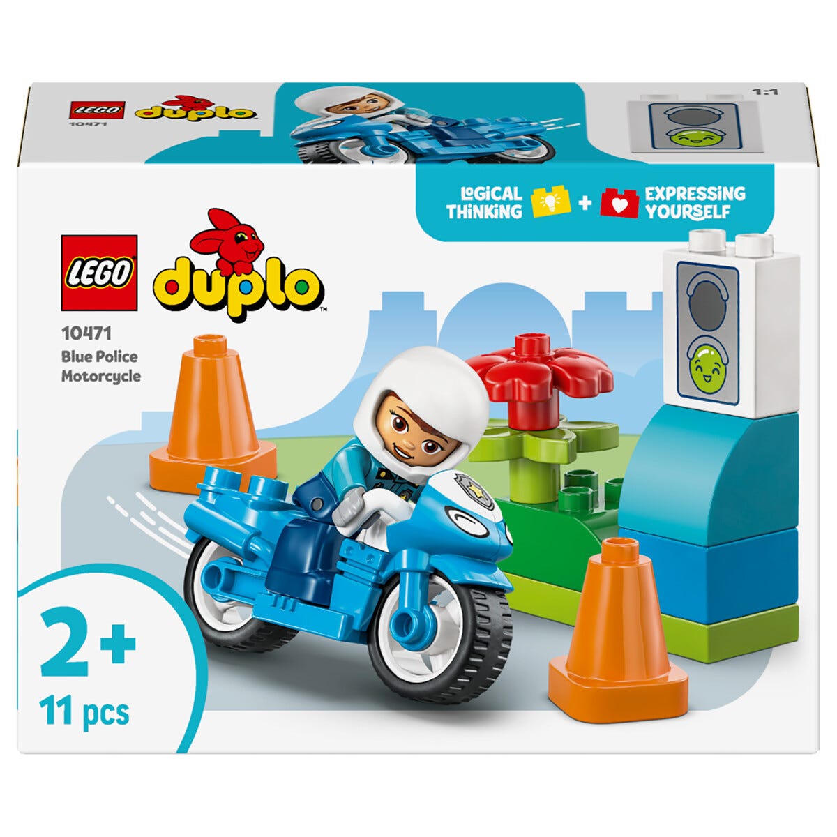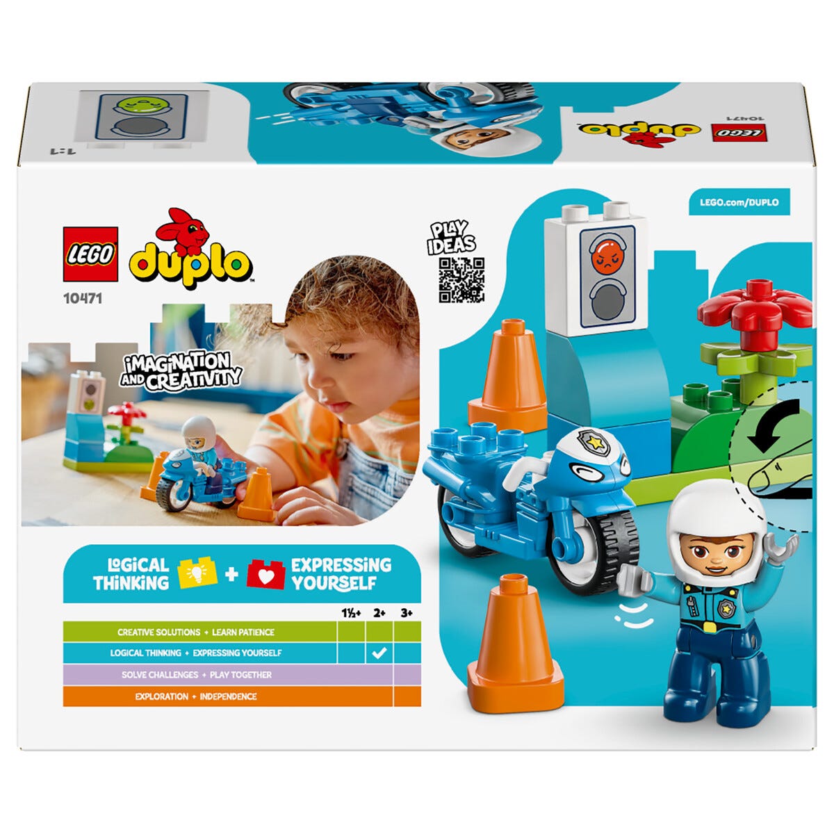 • LEGO Duplo Blå polismotorcykel 10471 – greppvänliga klossar för barn från 2 år.