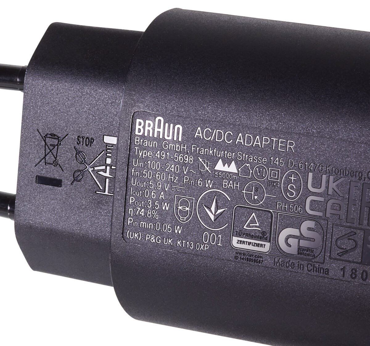 Braun original Smart Plug nätadapter 6 V som passar en mängd olika rakapparater, skäggtrimmers, hårklippare och multitrimmers, bl.a. Series 5, Series 7, BT, HC, MGK, Cruzer och Waterflex.