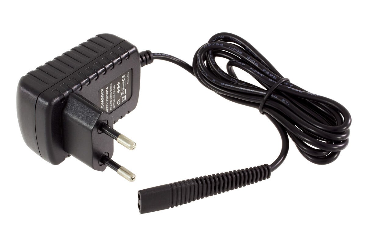 Nätadapter 6 V som passar en mängd olika Braun rakapparater, skäggtrimmers, hårklippare och multitrimmers, bl.a. Series 5, Series 7, BT, HC, MGK, Cruzer och Waterflex. Ej original.