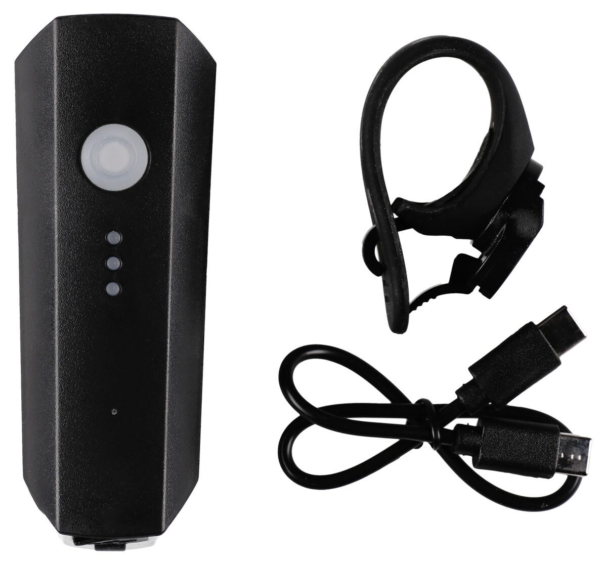 • Asaklitt cykellampa fram – lyser i cirka 9,5 timme på en laddning.
