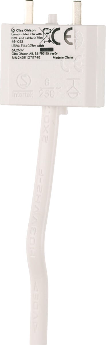 Lamphållare E14 med sladd och DCL, ojordad, 75 cm