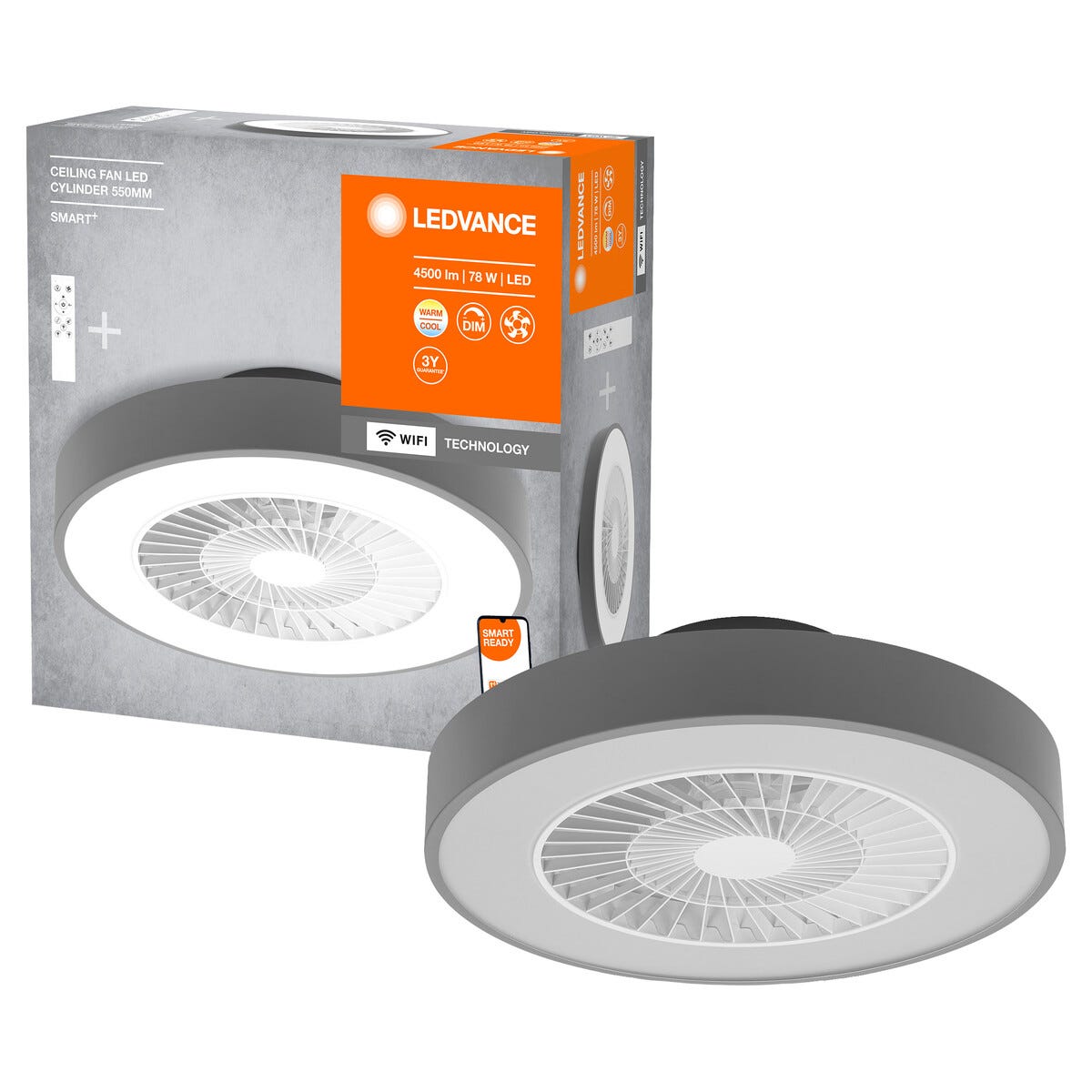 Ledvance rund LED-takfläkt 78 W, grå