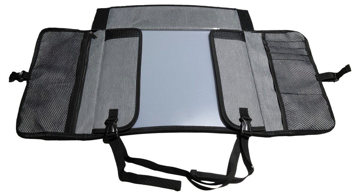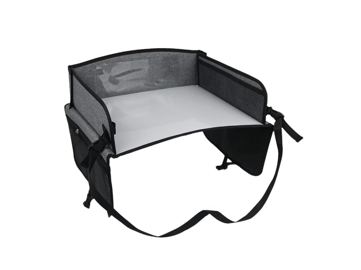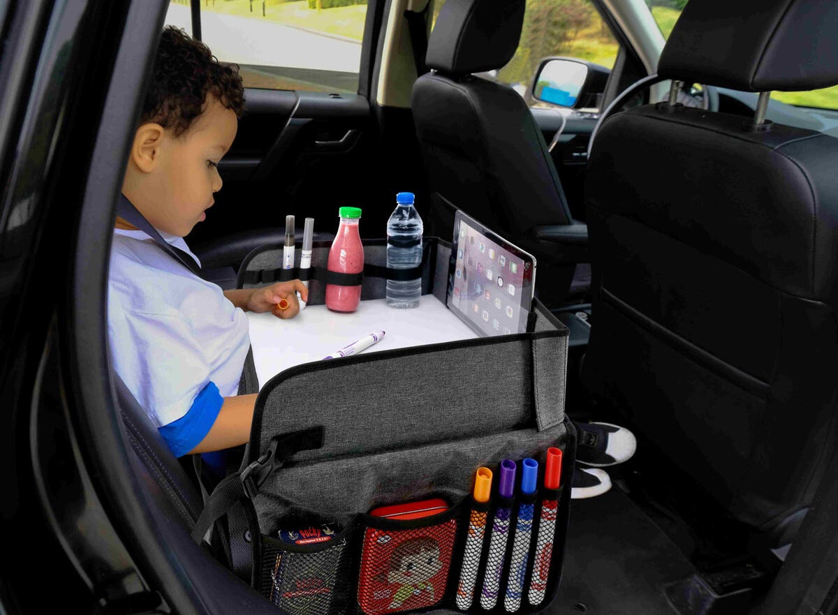 • Bilbricka med fack för snacks, böcker och surfplatta.