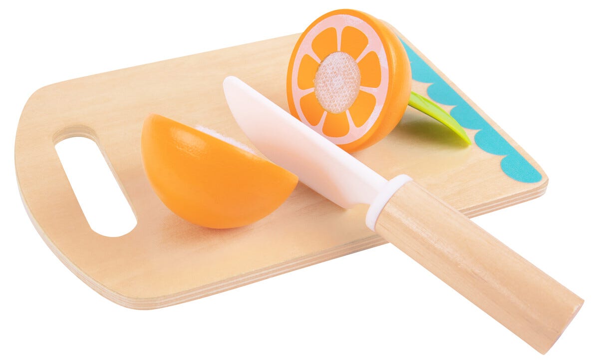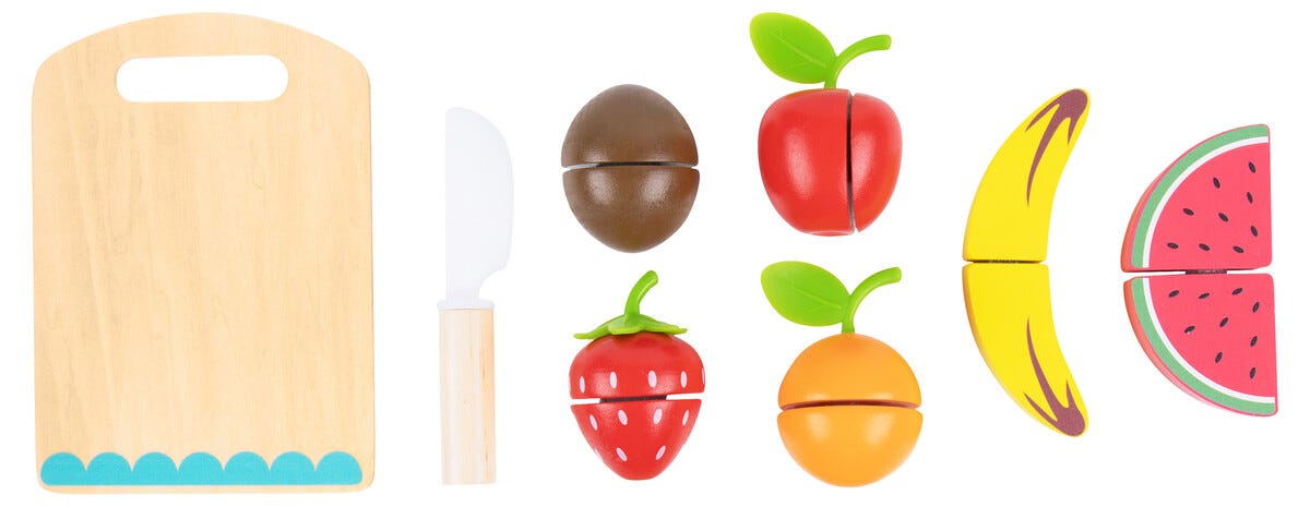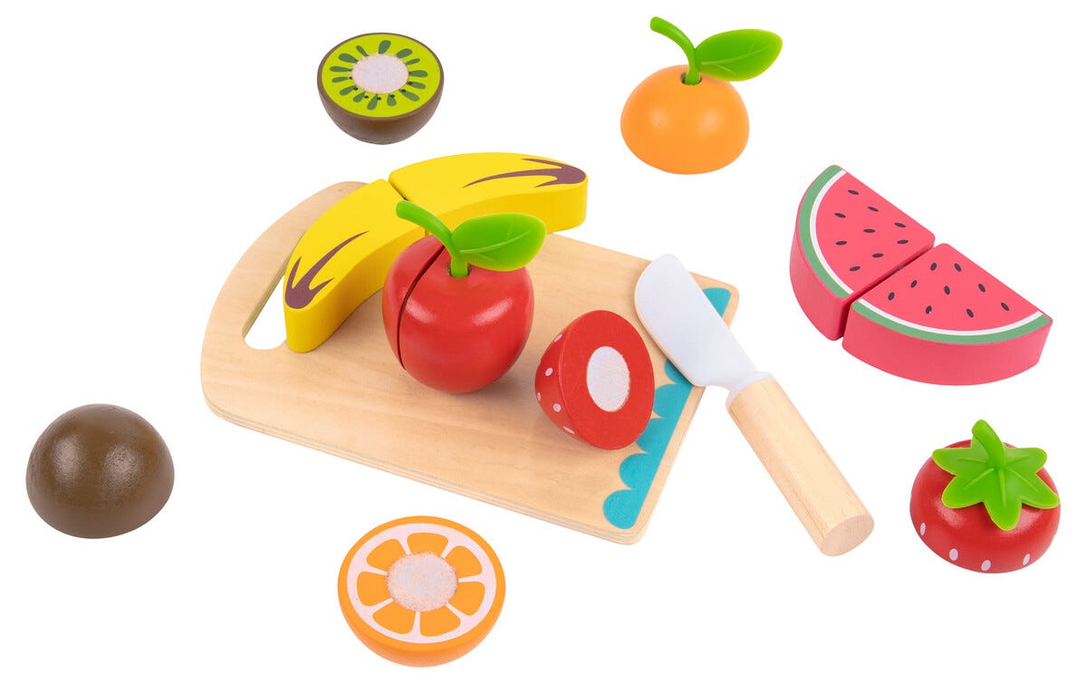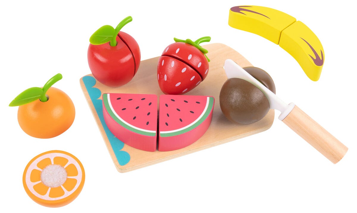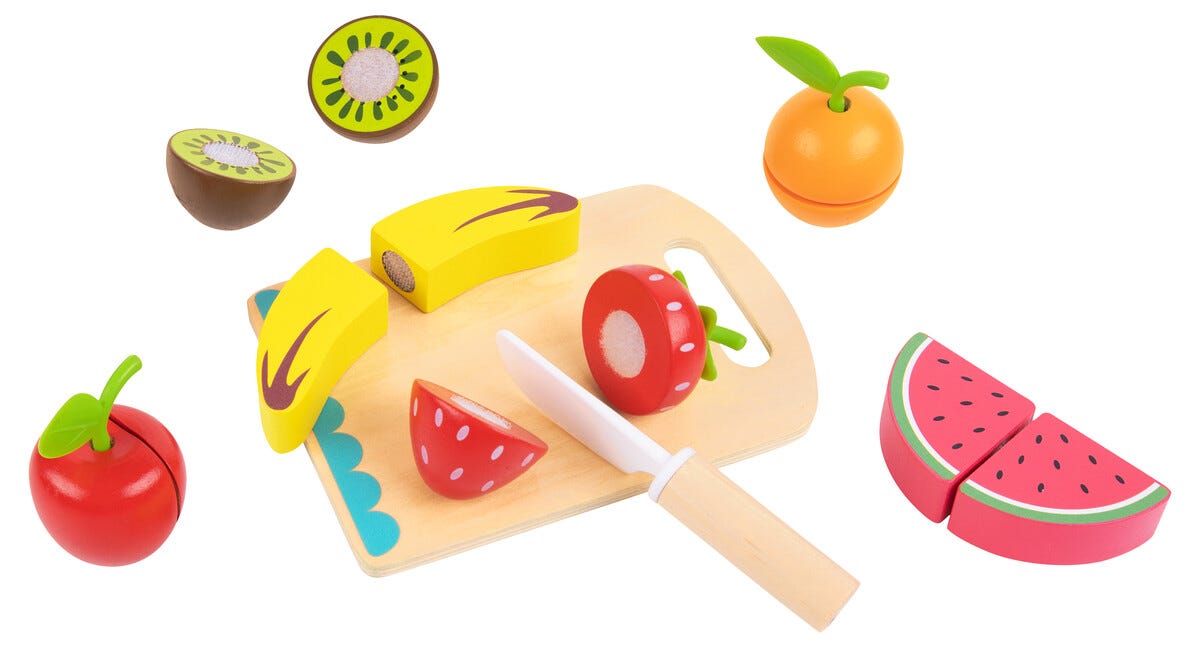 • Låt barnen skära frukter i trä – låtsas laga fruktsallad eller mellis.