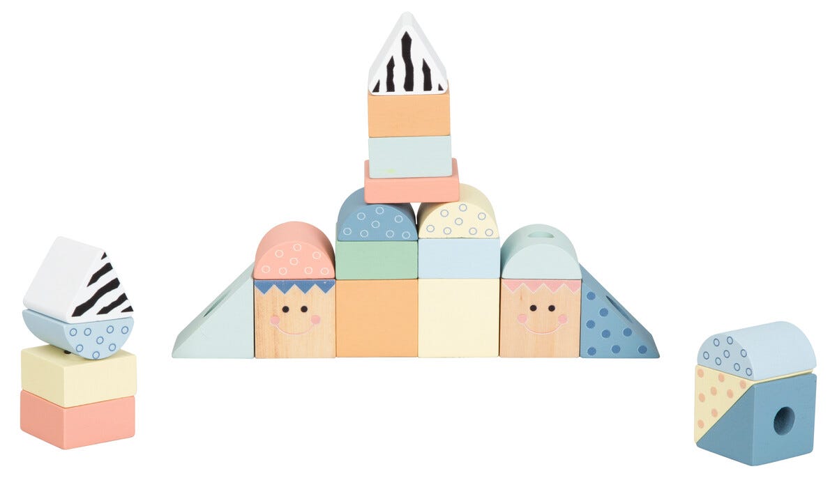 • Tåg med träklossar – tränar barnens finmotorik och känsla för form och färg.