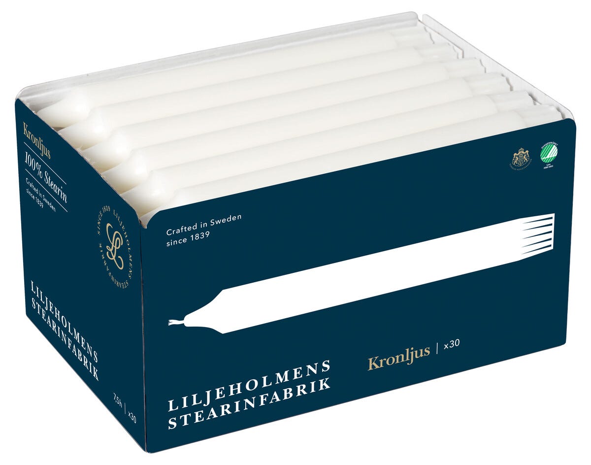 Liljeholmens kronljus, vita, 30-pack, 100 procent stearin