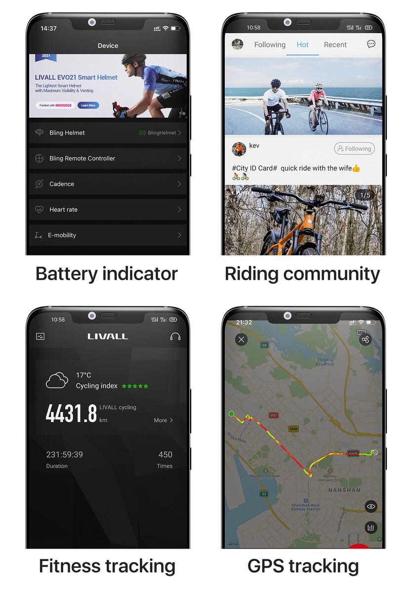 • Livall EVO21 Commuter+ cykelhjälm med falldetektering och SOS-alarm.