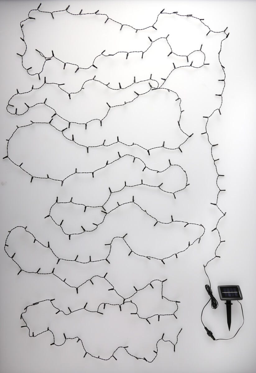• Ljusslinga solcell med timer – hela 200 varmvita små LED-lampor på 14 meter.