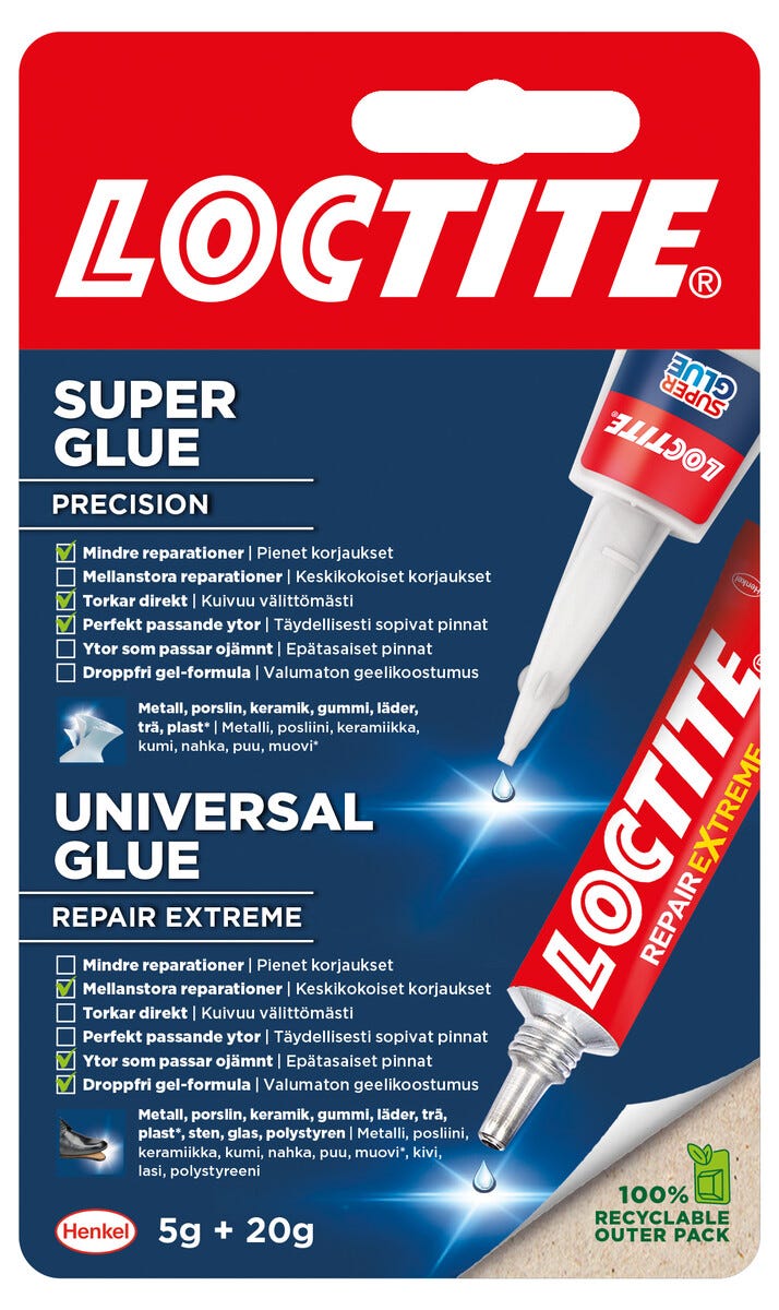 Loctite Duo Pack, superlim 5 g och universallim 20 g