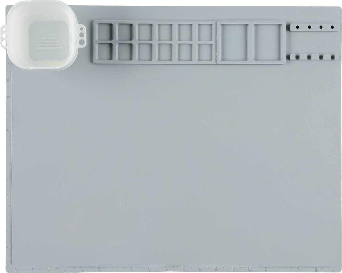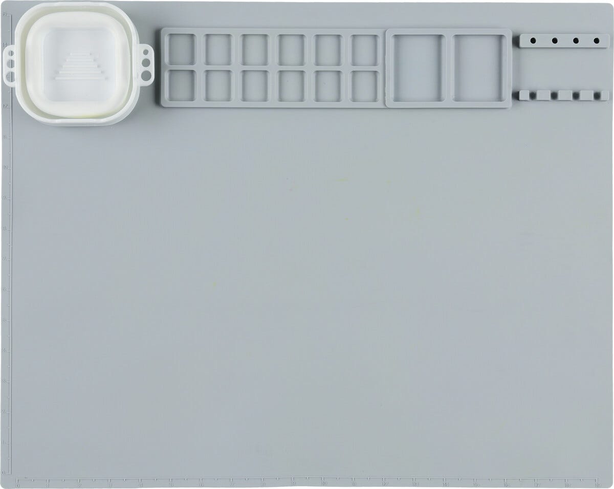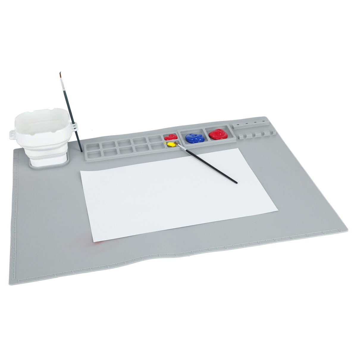 • Skrivbordsunderlägg i silikon – skyddar bordet mot färg och kladd.