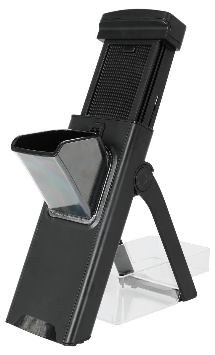 • Hopfällbar grönsaksskärare med sylvassa blad av rostfritt stål.