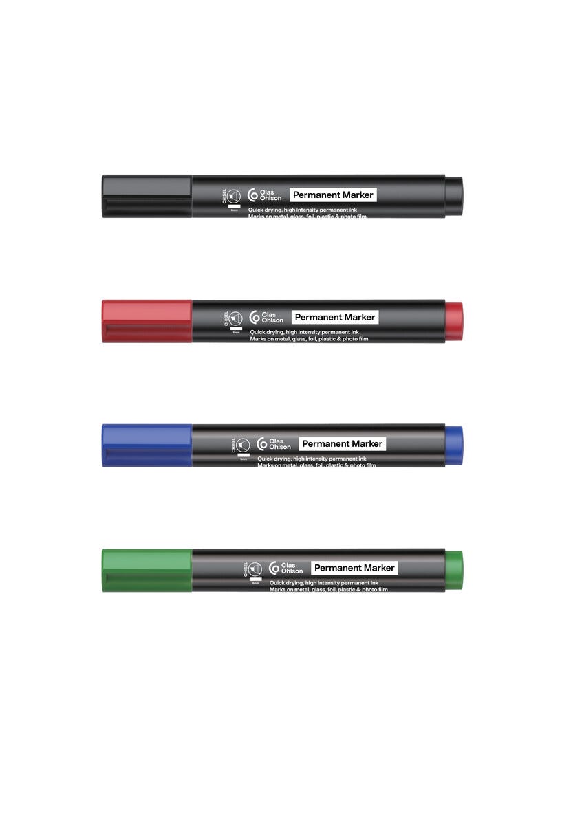 Märkpenna permanent svart, blå, röd, grön, 4-pack