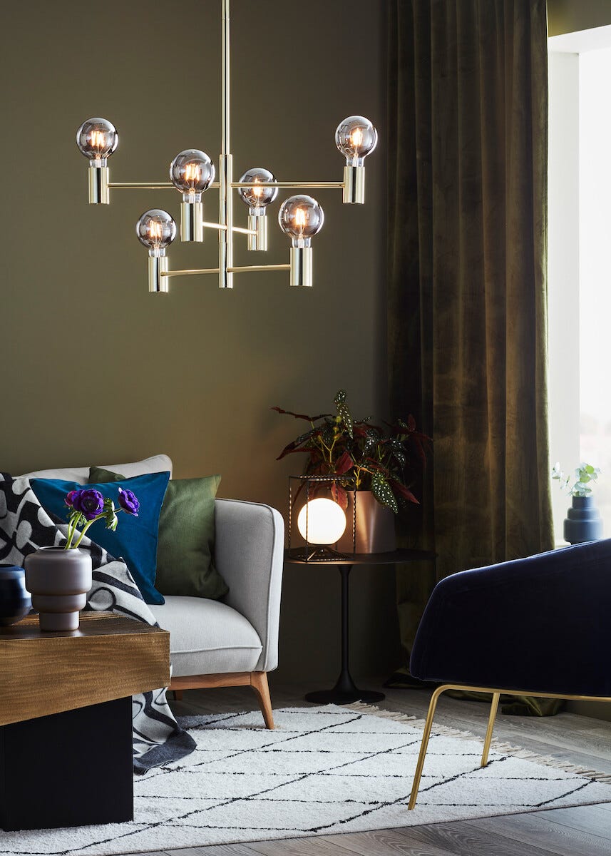 • Plats för 6 ljuskällor med sockel E27 (säljs separat).