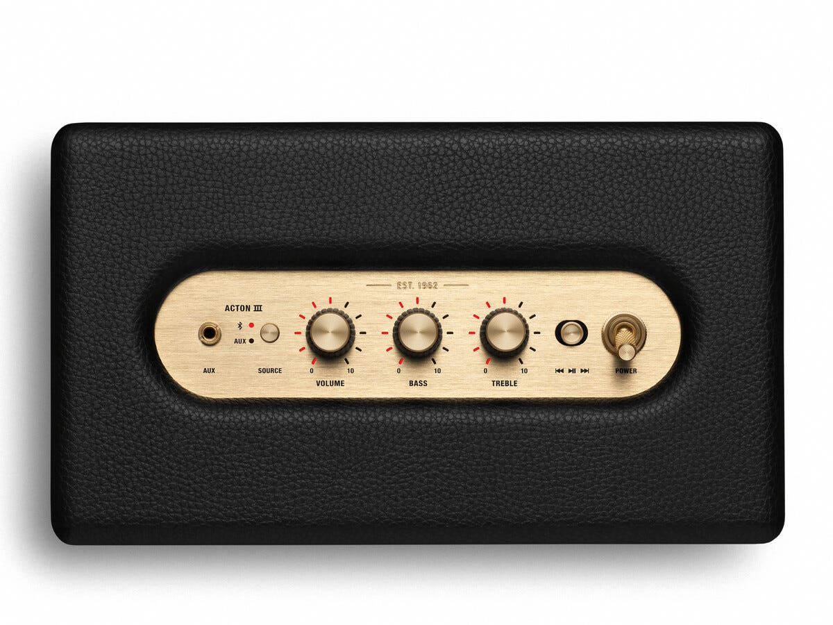 • Marshall Acton III – ikonisk design med vinyl-finish och mässingsdetaljer.