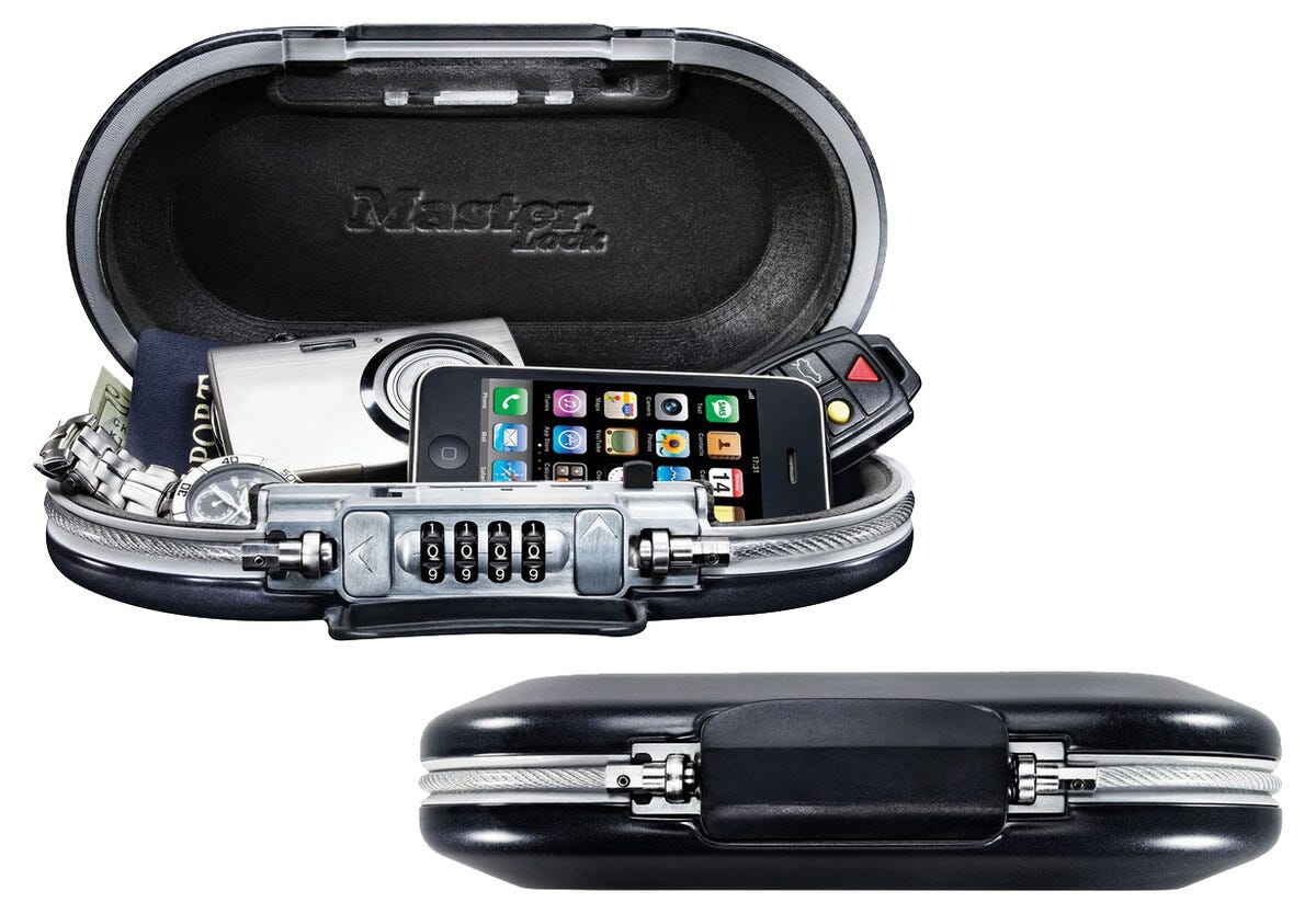 Masterlock portabel säkerhetsbox med kodlås och vajer