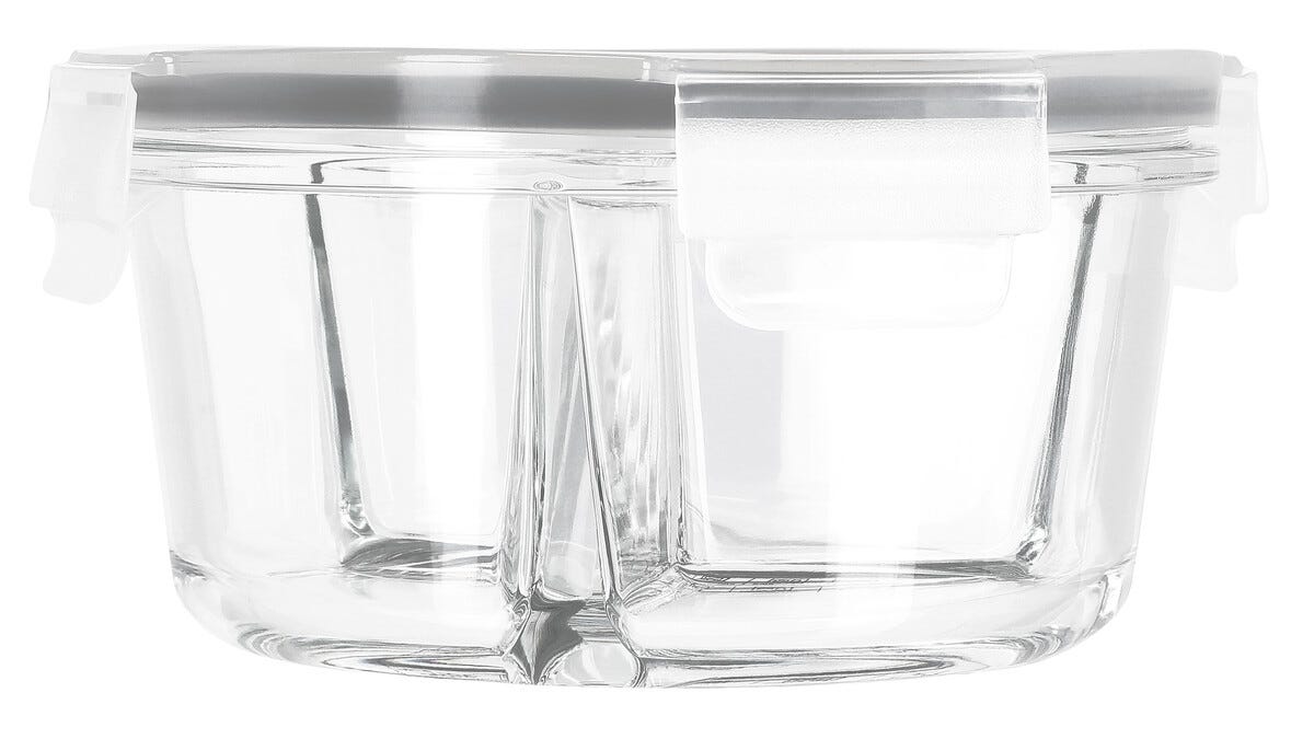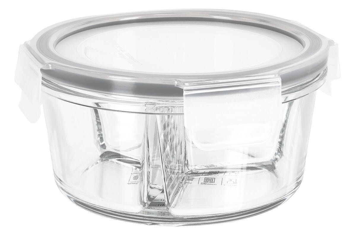 Matlåda glas 3-fack rund 0,6 liter