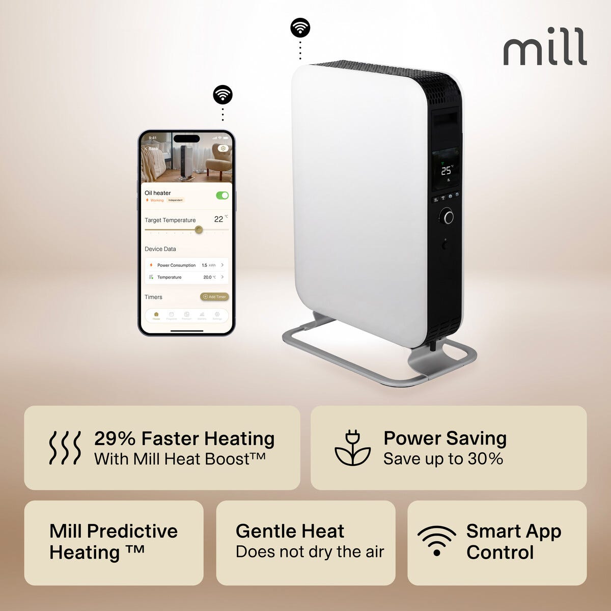 Mill Gentle Air Smart WiFi element oljefyllt, 2000 W